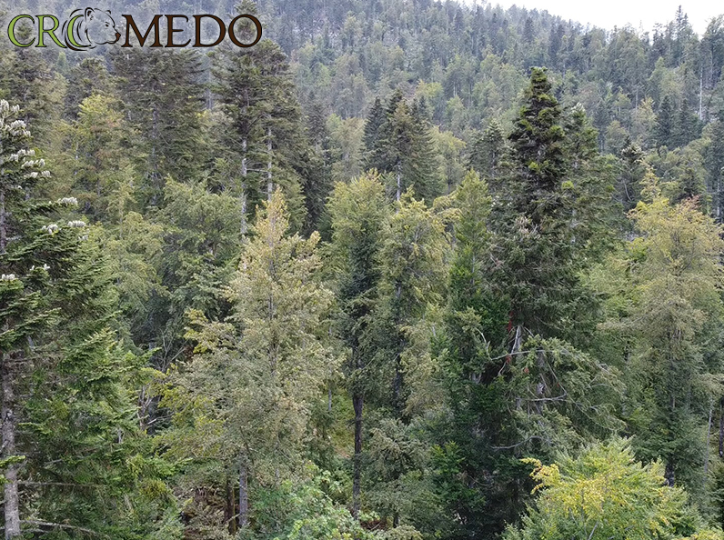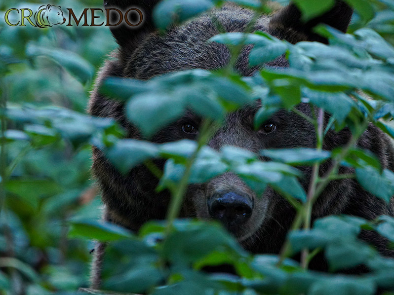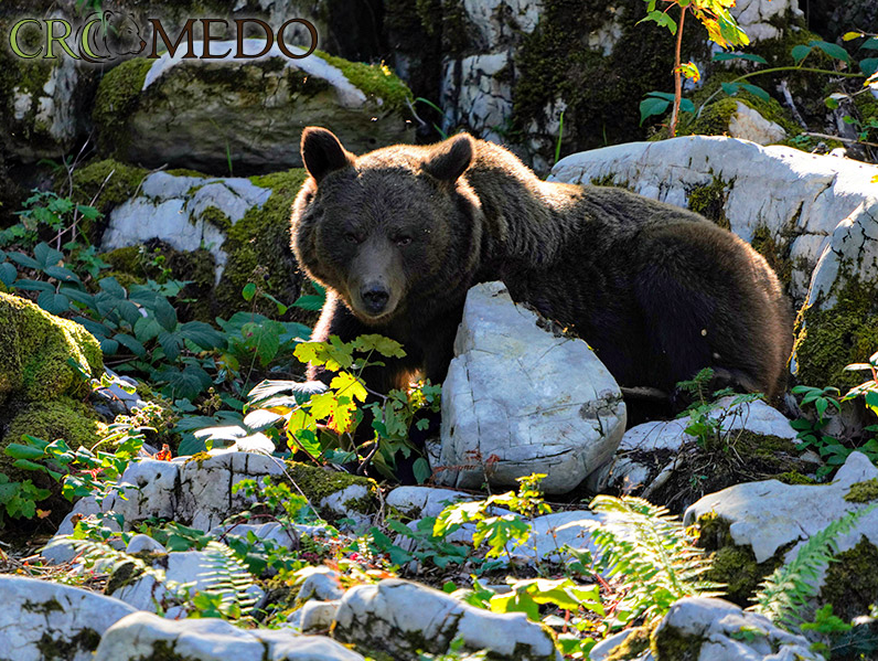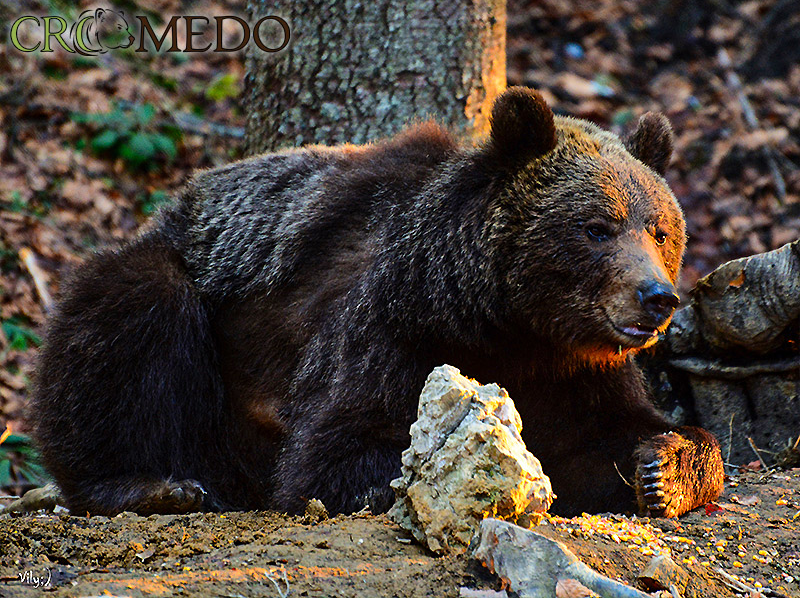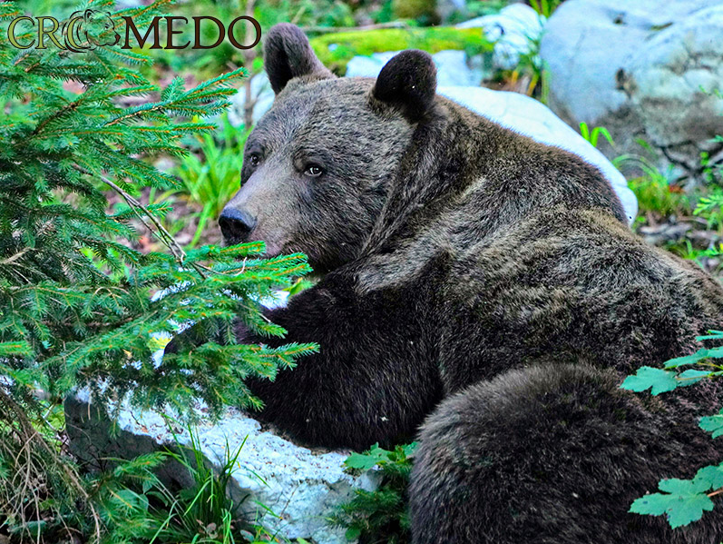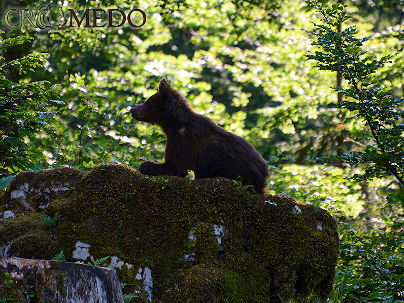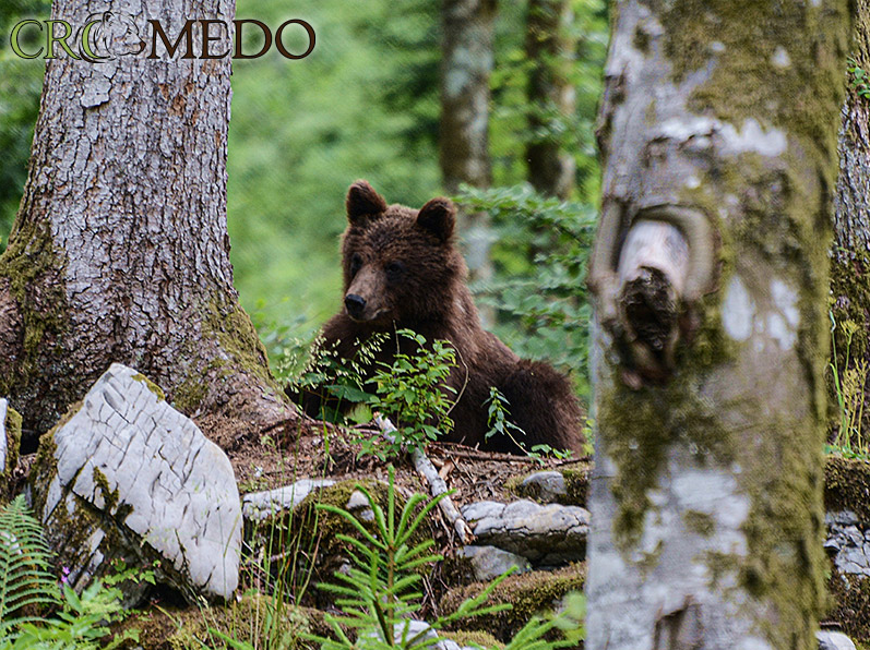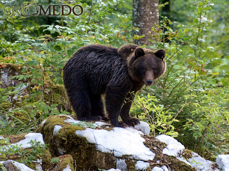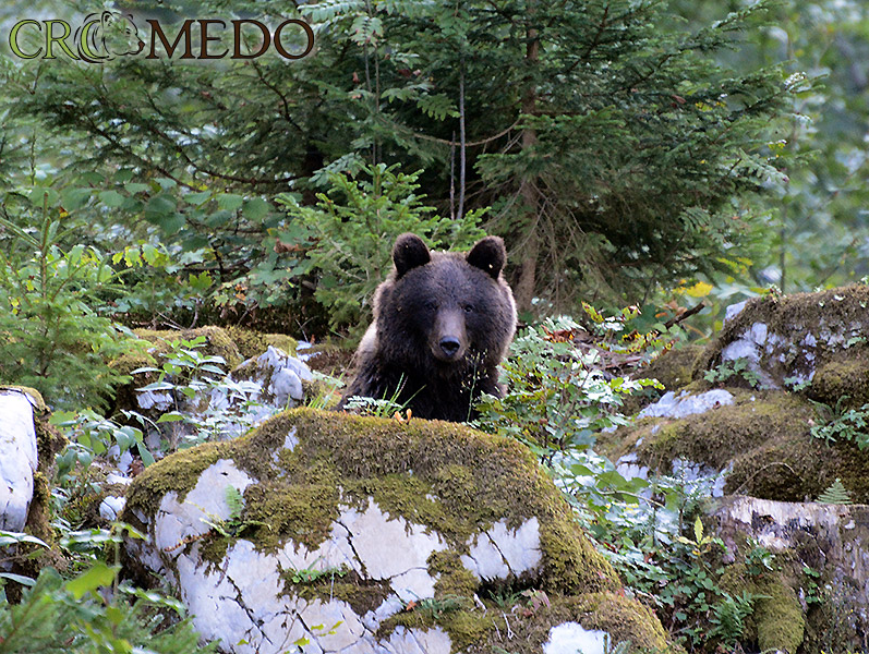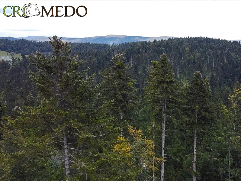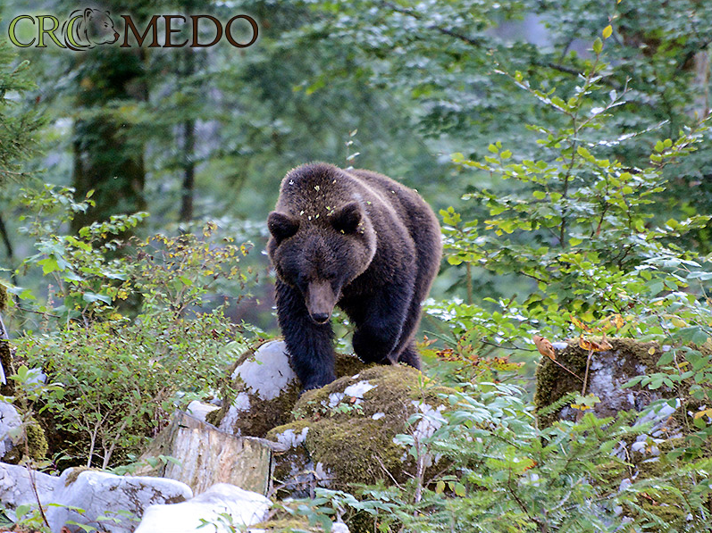 The surroundings around the "Dolina" lookout are meticulously arranged; from there are scenes of a bear climbing on rocky part of the forest, surrounded by high canopies of the forest.